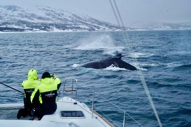 Cada invierno, las costas cercanas a Tromsø se convierten en un escenario único para el avistamiento de orcas y ballenas jorobadas. Estos gigantes marinos llegan atraídos por los bancos de arenques que se concentran en los fiordos.