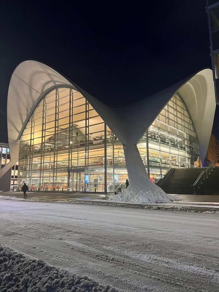 La biblioteca pública de Tromsø es uno de los edificios más bonitos de la ciudad. Su arquitectura moderna, con grandes ventanales y techos de madera, invita a entrar y resguardarse del frío mientras se disfruta de un ambiente tranquilo y acogedor.